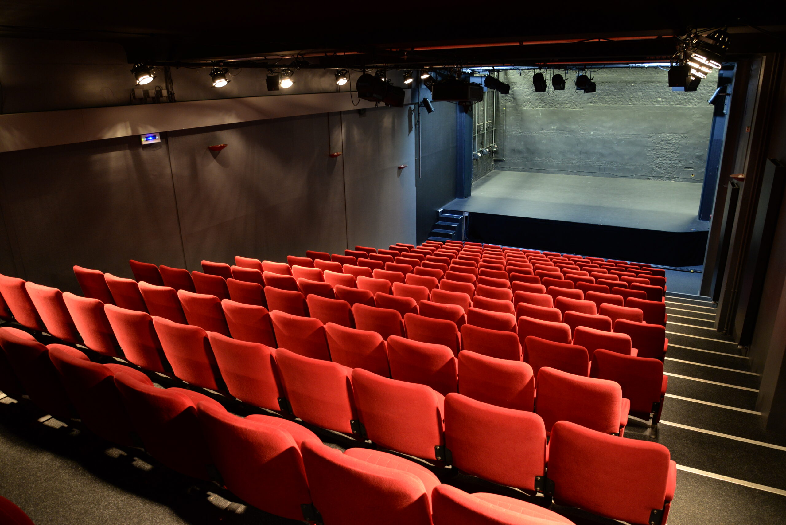 Ancienne salle de cinéma, le théâtre est une salle constituée d’un gradin de 166 places. Il offre à tous, une bonne vision de la scène et possède par ailleurs une très bonne acoustique. Il est le lieu principal d’accueil des spectacles. La salle dispose de 5 places pour les personnes à mobilité réduite.